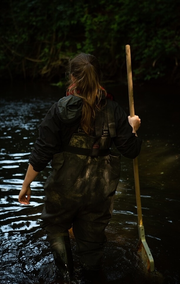 The standard method for white-clawed crayfish surveys involves hand searching potential refuges (such as rocks and boulders with a stream or riverbed) and using a hand net at sample locations.